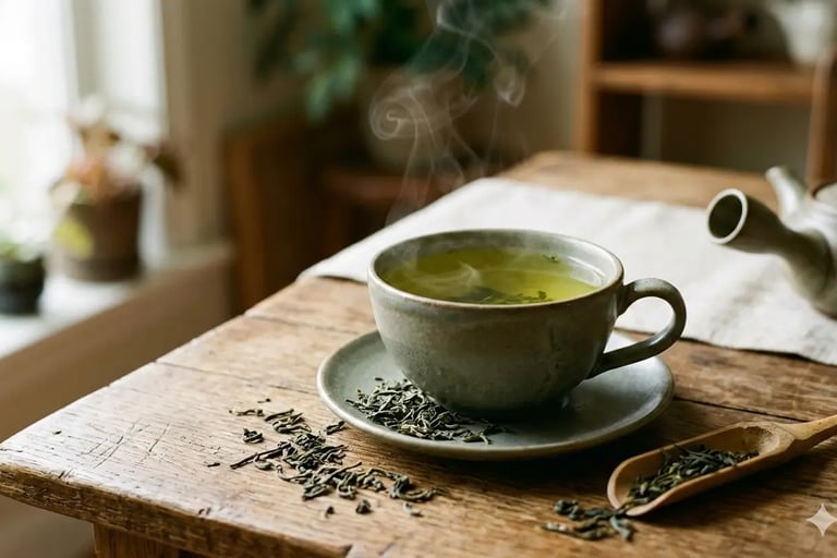Sencha: Folhas secas tradicionais, equilíbrio entre sabor suave e benefício funcional. Mais comum no mercado, fácil de encontrar e versátil para consumo diário. Preparo: infusão de 3-5 minutos em água a 80°C para preservar compostos.
