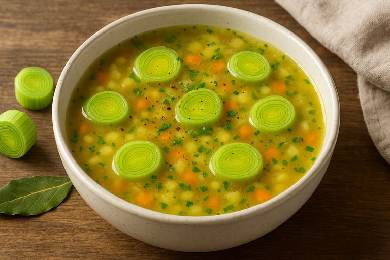 Curiosidade: O alho-poró é da mesma família do alho e da cebola, mas tem sabor mais suave e digestão mais leve.